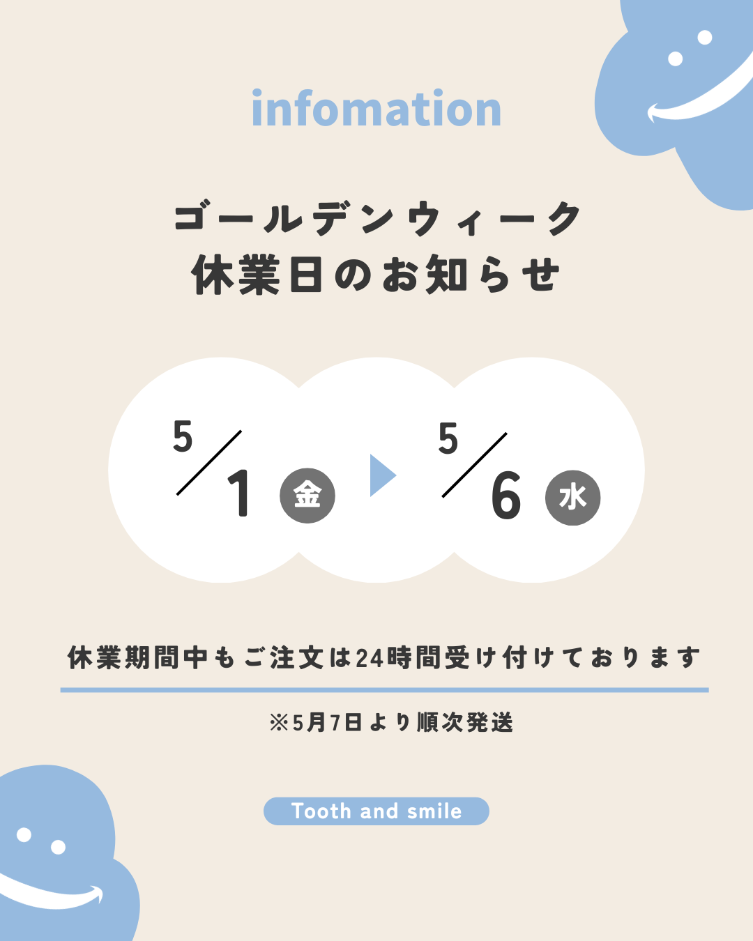 休業期間:2026年5月1日(金) ~ 2026年5月6日(水)