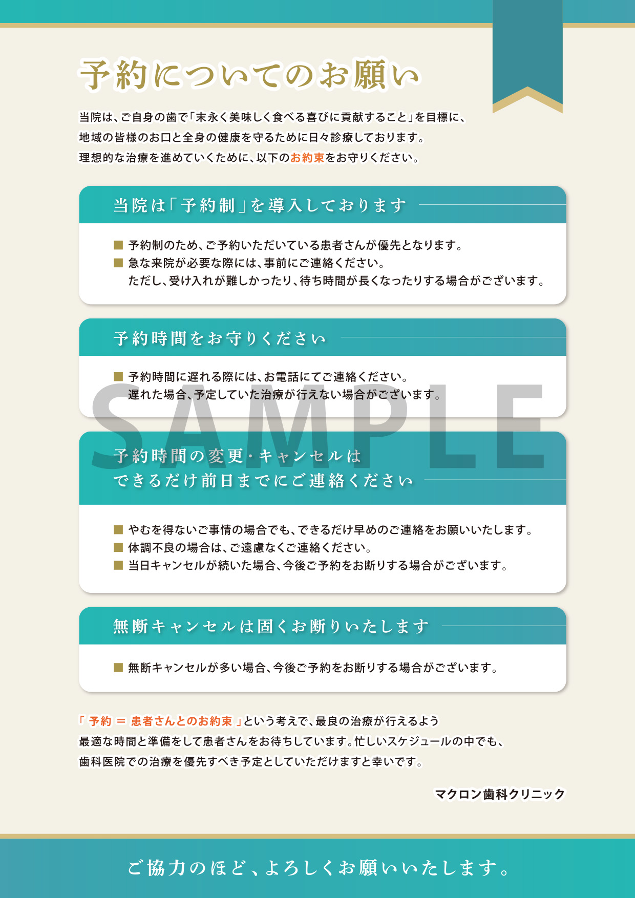 患者様へキャンセルポリシーを伝えるツールセットです。